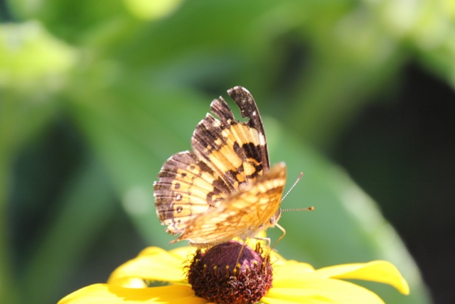 A small butterfly landed on a Black-Eyed Susan for some nectar.