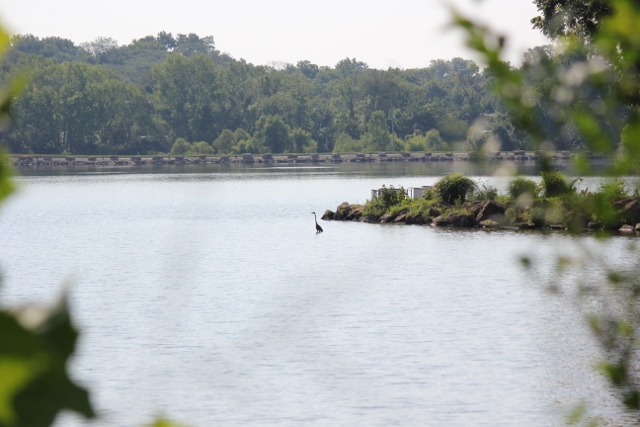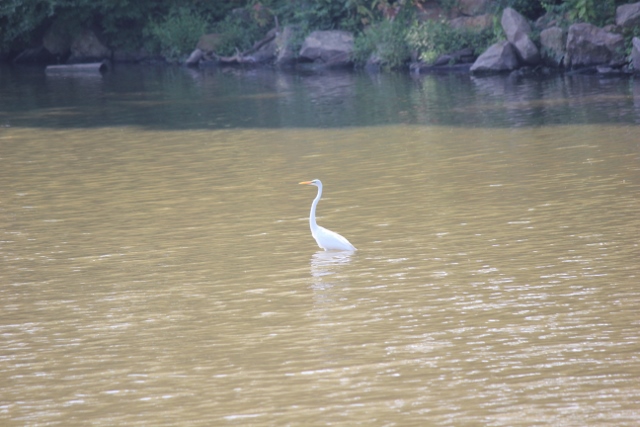 We have a Blue Heron that stays at the lake every summer and this year we have a newcomer, a White Heron is summering here too. These two were fishing for their lunch when the dogs and I were out on a stroll.