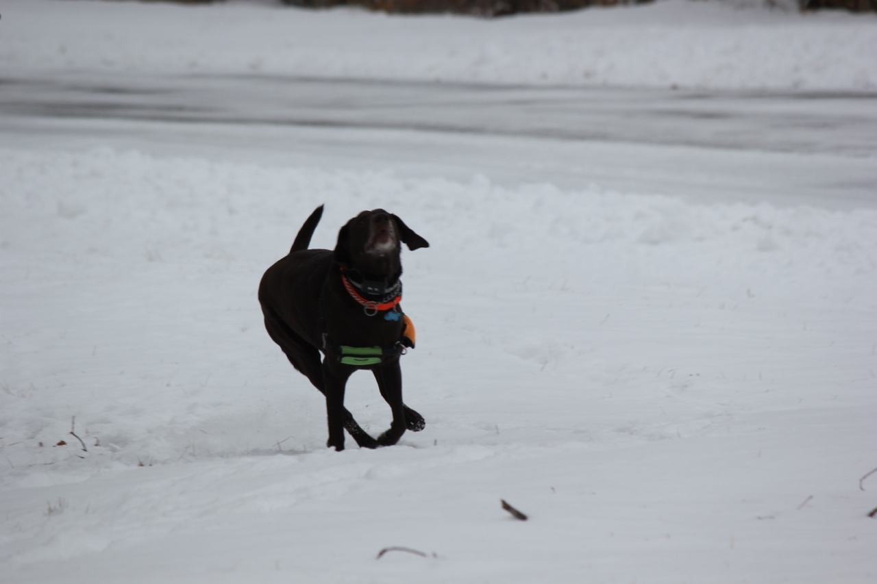 Sunday playing in the snow. We got about 3 inches of snow, not bad and the dogs love it.