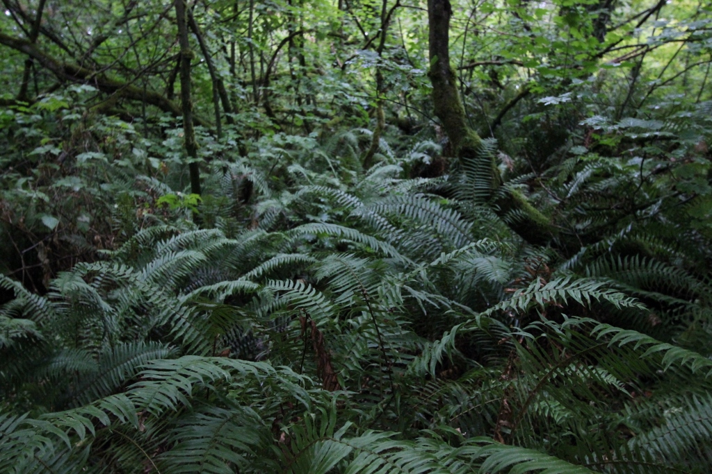 Lush ferns on the trail at Saltwater State Park
