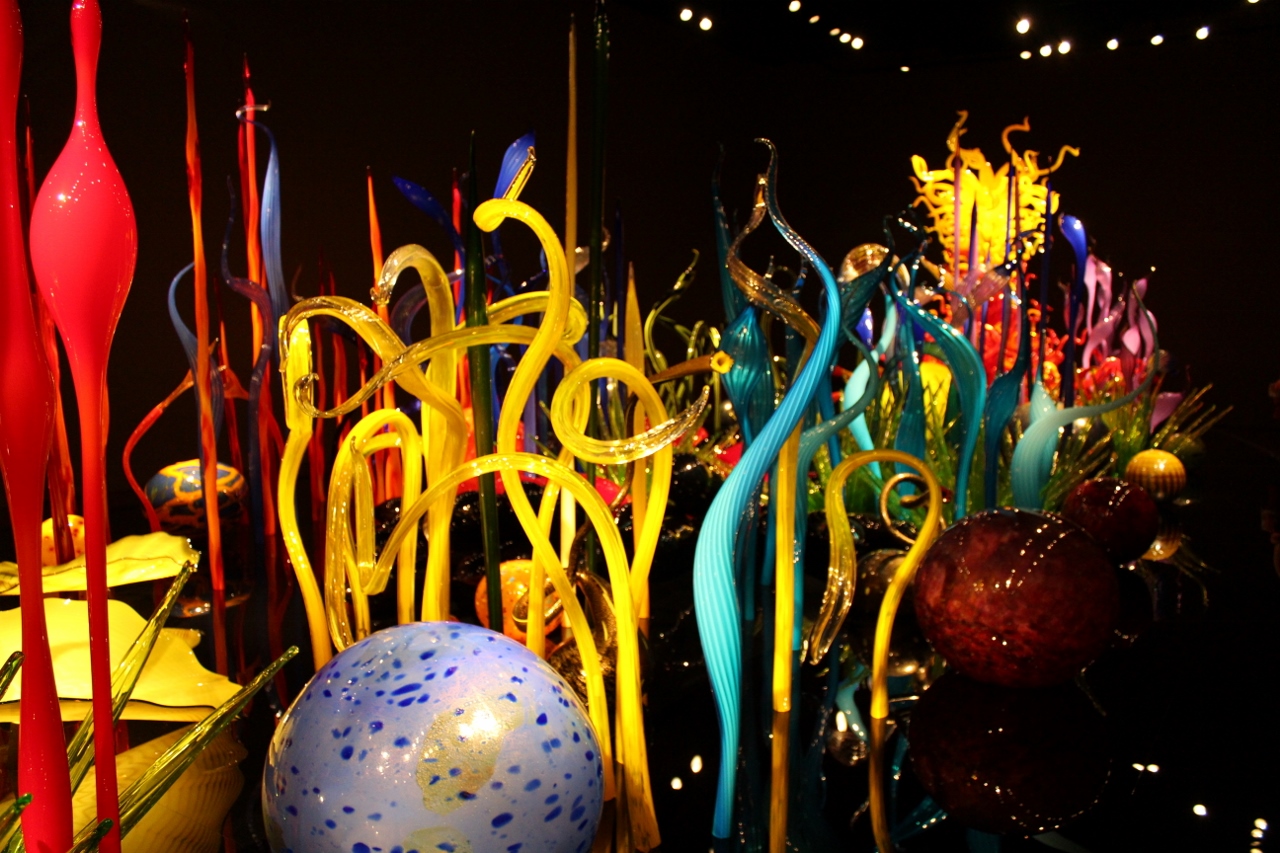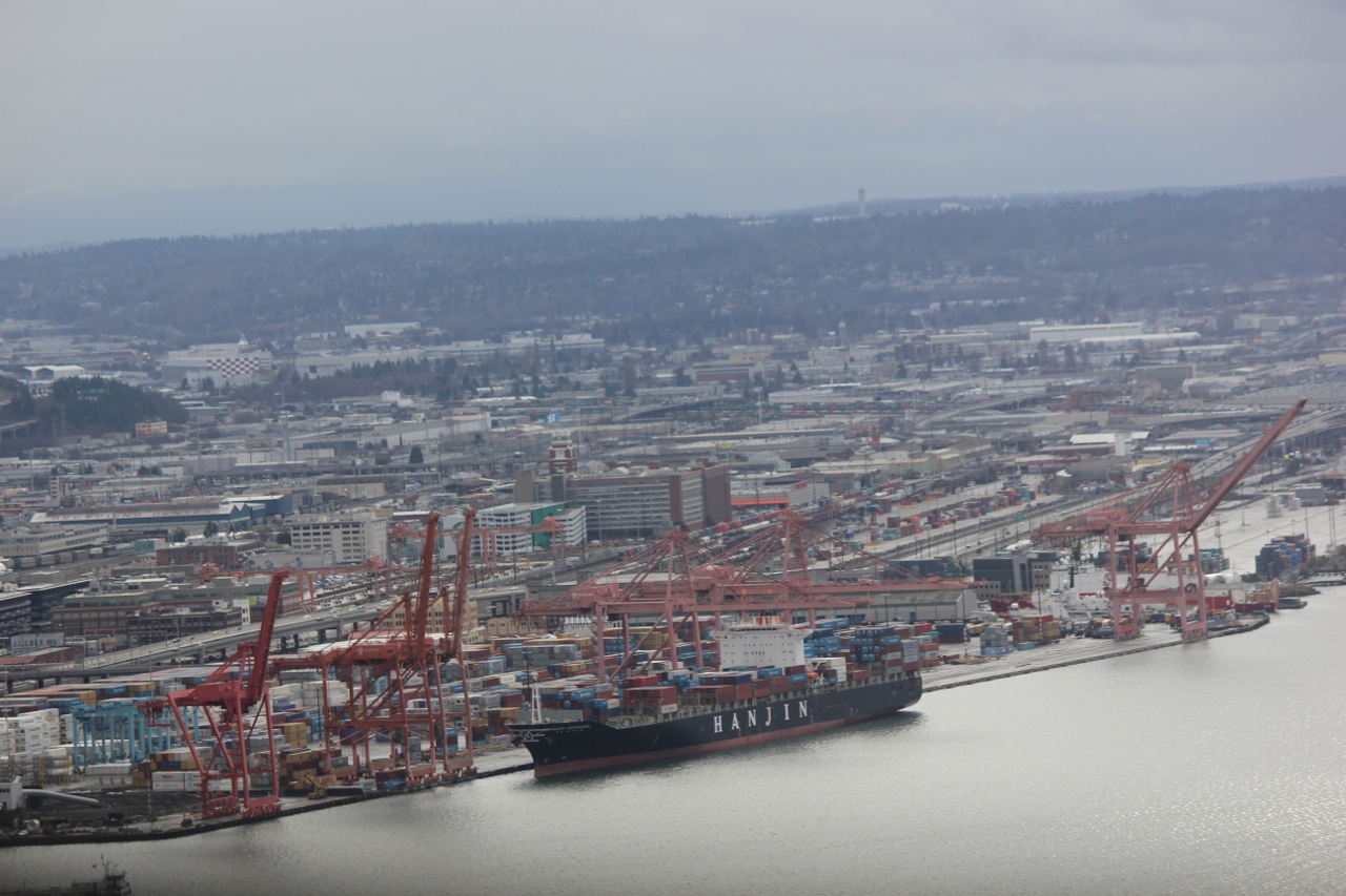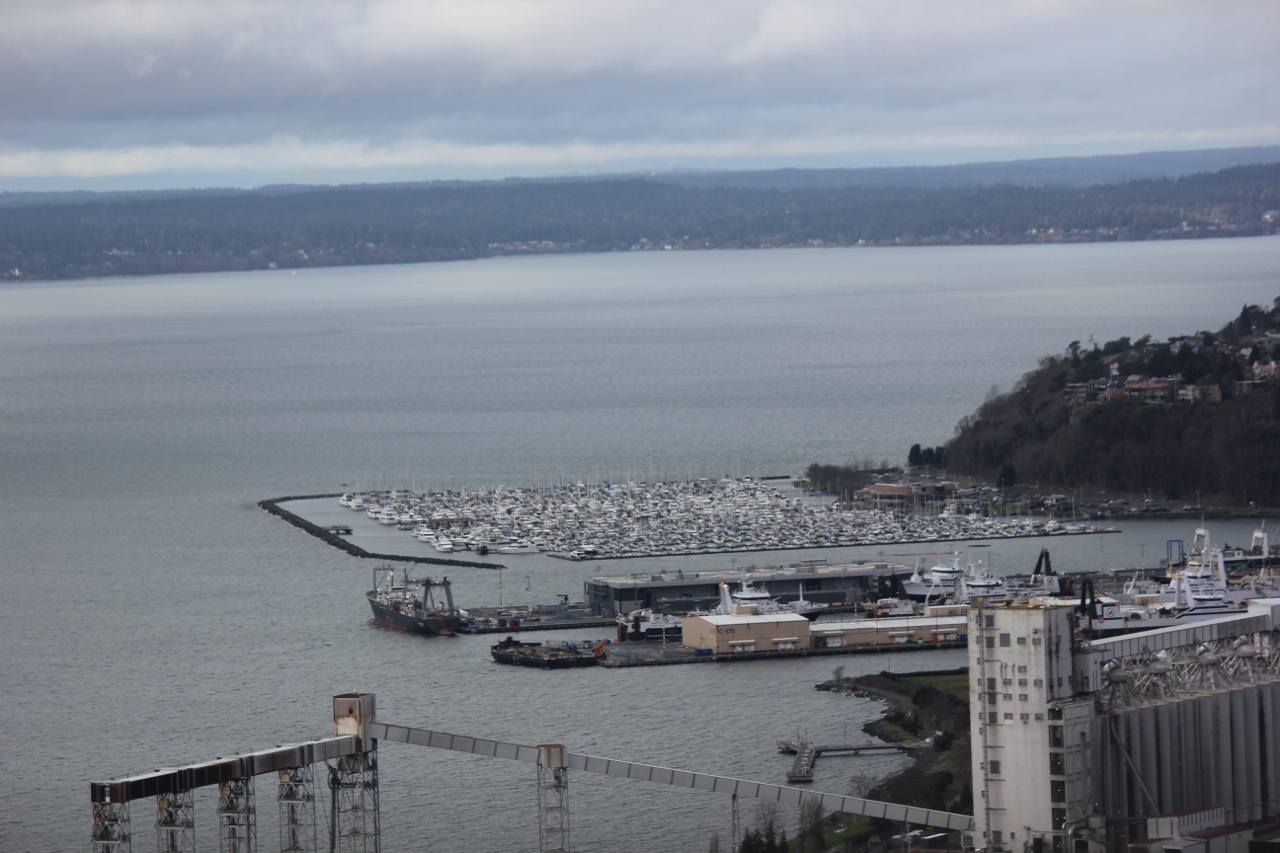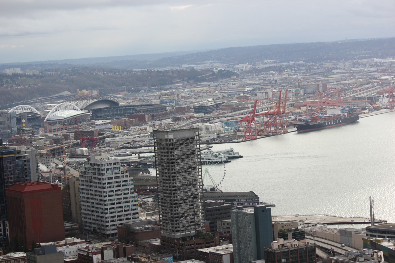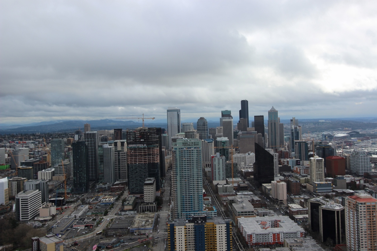 Mitch had a rare Sunday off and with the upper elevations getting tons of snow, we opted for a day at the Space Needle and the Chihuly Garden and Glass Museum. We thought that since it is the last weekend before Christmas, the new Star Wars Movie opening and the Seahawks playing at home the crowds, wouldn’t be too bad. It was cloudy and chilly but it wasn’t raining while we were at the top of the Space Needle. I was able to get some shots that I thought were pretty good.