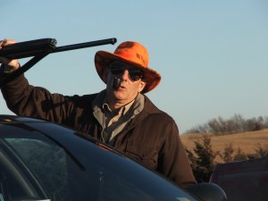 As we rounded an out cropping of trees that opened up to a small field of knee high prairie grass.  I walked on the outer rim while Mitch walked along the tree line.  As I got to the middle of the field I noticed that all of the dogs were with me (sans gun) and Mitch was nowhere to be seen.  I thought to myself, what was the number one rule of hunting?  Stay with the dogs.  I hoped that the dogs wouldn’t find any birds, because I sure wasn’t going to kill a bird with my mind.  I kept calling the dogs back to me hoping to stall and Mitch would miraculously show up just as the dogs flushed some birds.  But no such luck.  Charlie flushed one into the tree line at the edge of the field and I found myself running to where the quail flew despite the fact that I only carried a camera.  Old habits.  Mitch finally showed up just as AJ flushed a small covey of about five quail.  Mitch shot two into the trees when a third one flew out over my head and as Mitch swung around for the shot I quickly dropped to the ground to avoid either being shot or slapped in the head with the gun barrel.  He got the bird, by the way.