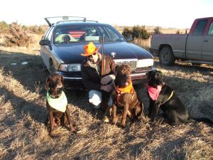 Pheasant season is right around the corner and if your dogs are anything like ours, they get into a lot of thick tall grass searching for the elusive scent of a pheasant. Often other creatures pop out of the underbrush, such as rabbits, deer and on occasion, a skunk. That happened on one hunting trip. The dogs were hot on a pheasant that wanted to run through some prairie grass and would not break cover, when the dogs stopped short. As I caught up to Charlie and Orso I could make out something black sticking up in the grass and the dogs were barking at it. I just barely made out the shape and screamed, “Skunk! Leave it –leave it!”