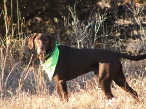 Orso started off and actually put head down and used his nose to search for a likely scent.  This was a bird he liked and wanted to find.  Who knew?  Orso wandered farther into the field head down, stopped for a brief moment then lunged forward catching a bird in his mouth before it could fly.  He came trotting up to Mitch with the bird in his mouth, its’ little white head poking out to the side.    He did this not once but three times.  Orso had great success at quail hunting.  He only needed us to carry the birds after he caught them.