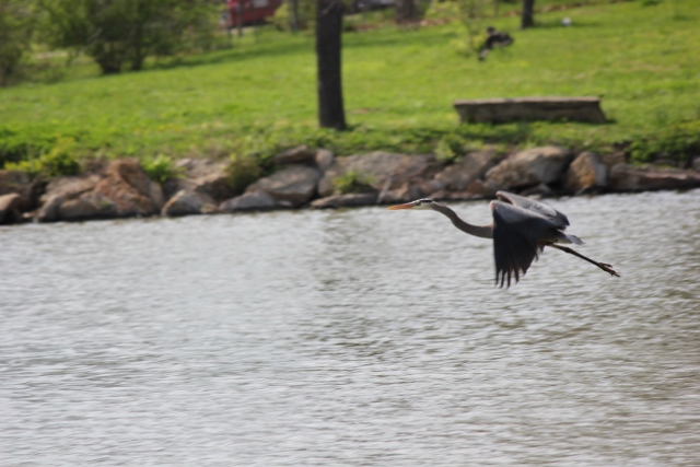 Every summer we have a couple of resident Blue Herons that stay until it gets too cold.  I was able to get a shot of one of them in flight.  He looks pretty cool in flight.