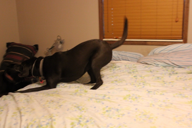 It took me ten minutes to get them back under control and into the house. It seems Charlie can still act like a puppy too when the mood strikes him.